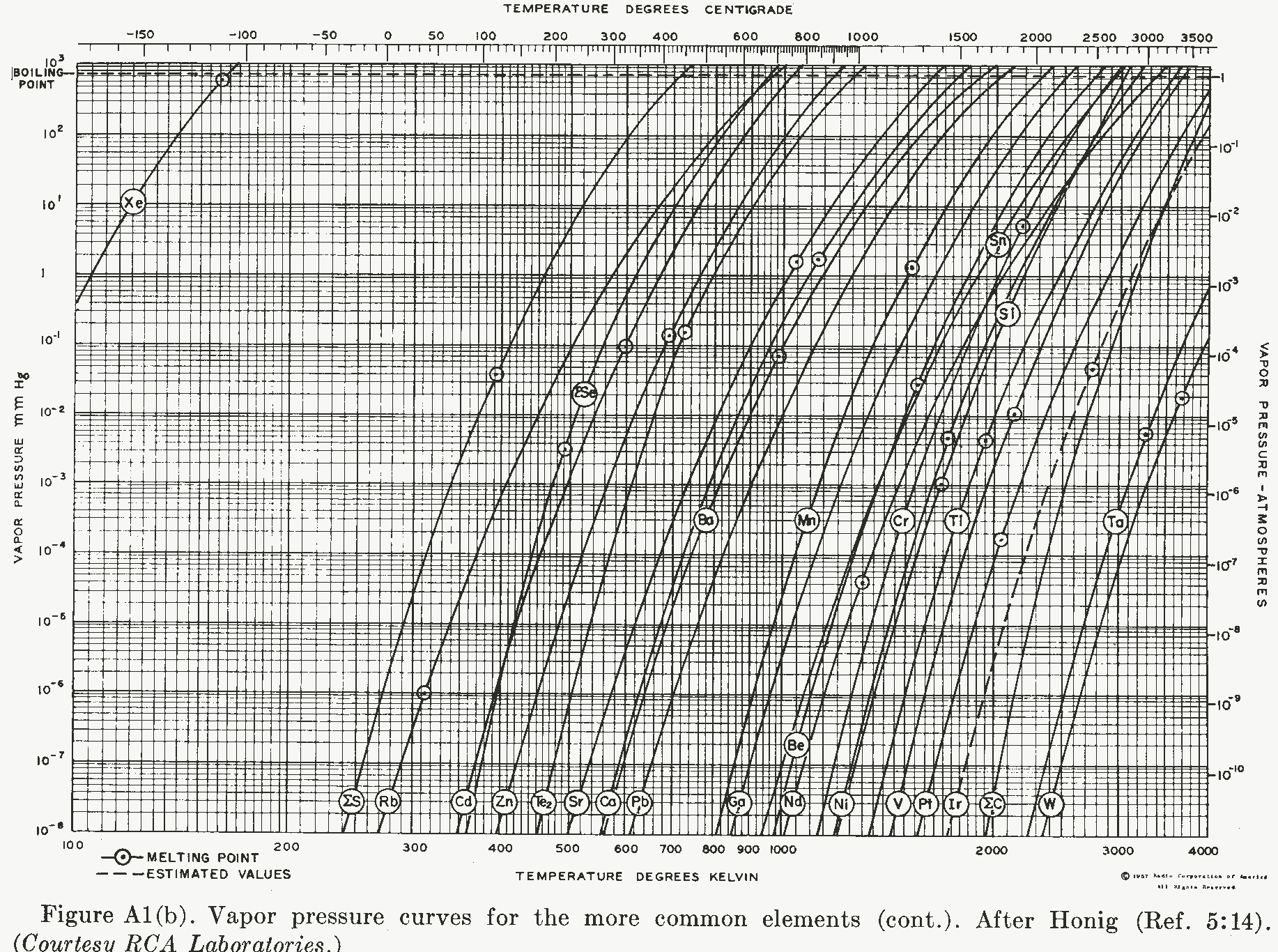 See attached vapor pressure curves, i.e. Calcium, Zinc, Cadmium, Magnesium, Lithium, Sodium, Cesium, Strontium, etc.